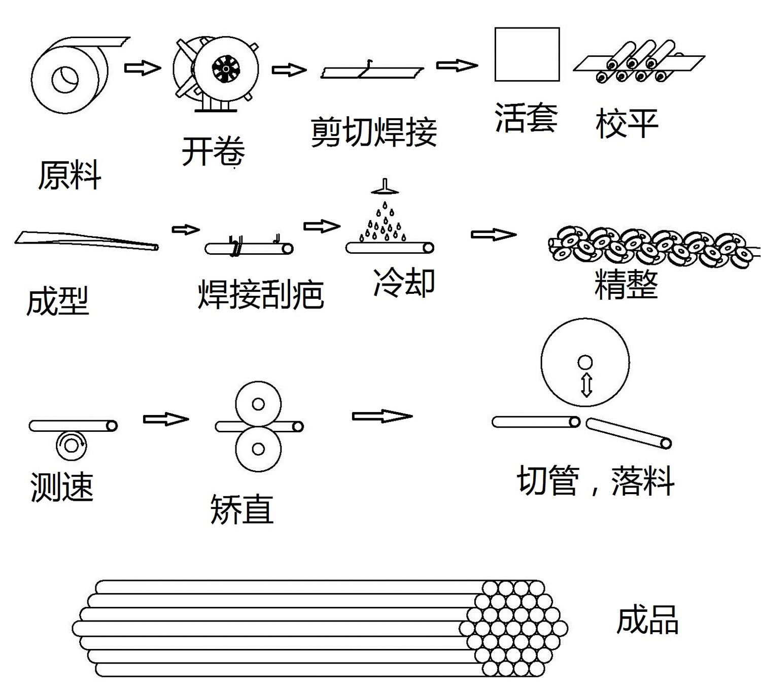 5. 落管架:功能是輸送定尺鋸切的成品鋼管。